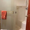 The shower, with its sliding glass door, gives us a much more